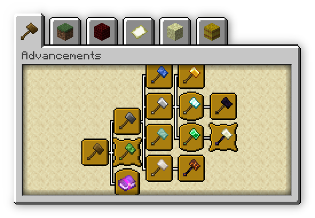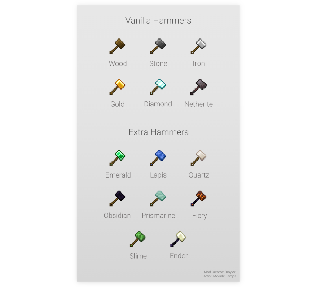 ▲ 除了既有的 Minecraft 原版風格材質以外還有額外的不同種類槌子可供打造